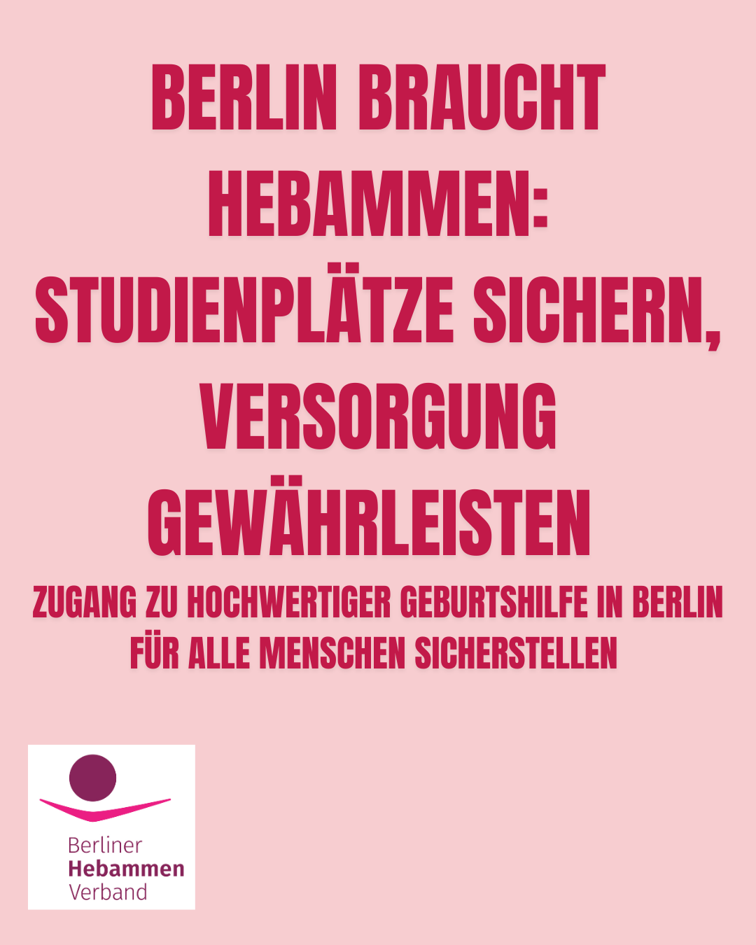 Der Berliner Hebammenverband e.V. vertritt mehr als 1.000 Hebammen und Werdende Hebammen* in Berlin und ist Mitglied im Dachverband "Deutscher Hebammenverband" mit Sitz in Karlsruhe. Wir vertreten die Interessen unserer Mitglieder auf regionaler Ebene und bringen die Anliegen von Hebammen in die öffentliche Diskussion ein.